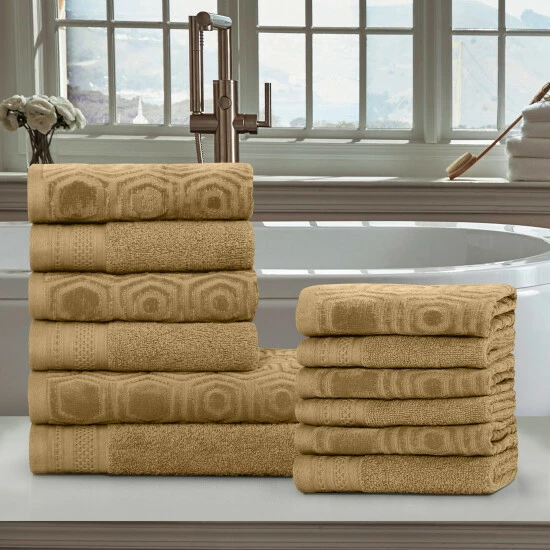 Transform your bathroom into a spa-like retreat with the beautifully designed Cache Combed Cotton Highly Absorbent 12-Piece Jacquard Honeycomb and Solid Towel Set. Each towel in this bundle will soak up moisture effortlessly, keeping you toasty warm as soon as you step out of the shower or bath. These medium-weight Cotton towels are oh-so-soft to the touch and highly absorbent to help get you dry quickly. Available in two unique patterns, including a solid design with a raised border and a textural, raised honeycomb design with a solid border, it’s easy to add comfort and style to your master bath, powder room, or guest bath.Β