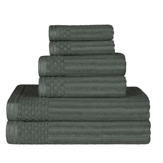 The 100% Cotton Highly Absorbent 6-Piece Solid and Checkered Border Towel Set will refresh your bathroom with luxury hotel style. The premium 100% Cotton Jacquard construction makes this towel naturally strong and soft, with an ultra-absorbent design. Meticulous attention is paid to reinforcing the seams to ensure a perfect and long-lasting towel. Each towel is thick, ultra-plush, and highly absorbent to help you dry quickly. The beautiful checkered border is an elegant and classic update to your bathroom decor. Choose from a variety of stylish, vibrant solid colors to coordinate with your unique bathroom, powder room, or guest bathroom decor.