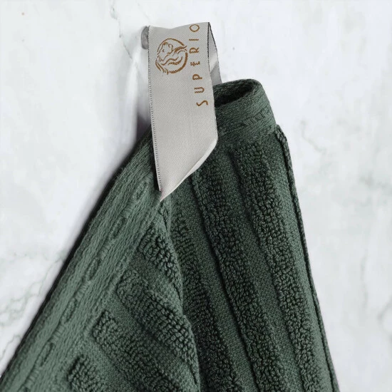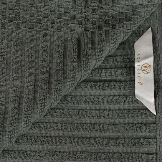 - Towel set includes a unique design; ribbed in a solid color with a checkered border