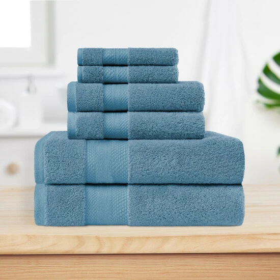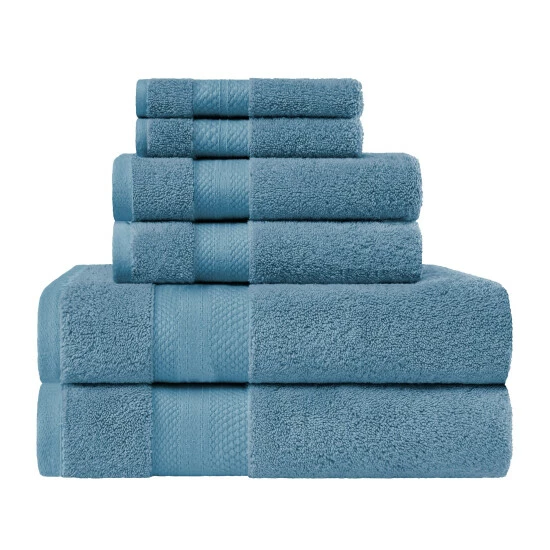 Enjoy the Tahigwa 100% Turkish Cotton Highly Absorbent 6-Piece Ultra Plush Solid Towel Set that looks as good as it feels every time you step out of the shower or bath. The 100% Turkish Cotton construction has a ridiculously soft and luxurious feel while absorbing water faster to help get you dry quickly. Each towel in this 6-piece set boasts a heavy towel weight, making each towel thick, ultra-plush, and highly absorbent compared to other cotton fabrics. Pamper yourself or reserve this set for guests to bring a modern flourish to any master bath, powder room, or guest bath.
