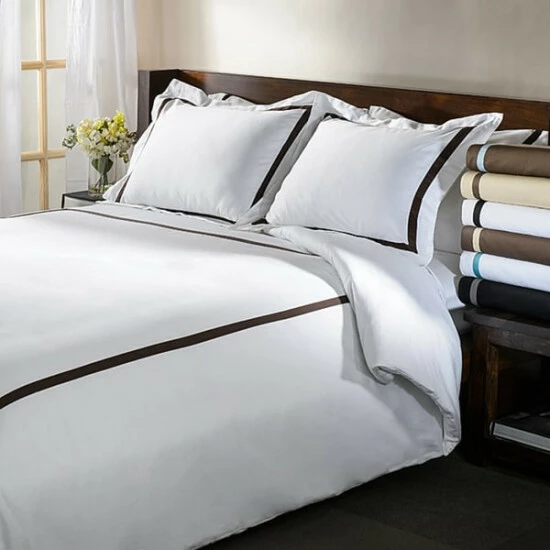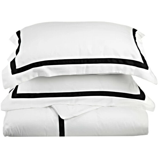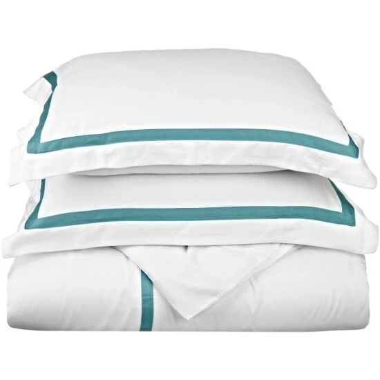 Enjoy dream-worthy bedding with our beautifully designed Lou 300-Thread Count Cotton Breathable Solid Hotel Border Duvet Cover Set. Made from 100-percent Cotton, this set showcases a buttery-smooth feel and a subtle shimmer from their sateen weave finish. Each piece in this beautiful bundle is breathable, durable, and is perfect for year-round use. This duvet features a clear, hidden button closure, and each pillow sham features a 2-inch flange to lend a clean, streamlined aesthetic to your bedroom dΓ©cor. Enjoy the relaxed feel of this solid design that boasts a contrasting thick border that will look perfectly placed alongside your existing bedroom decor.Β