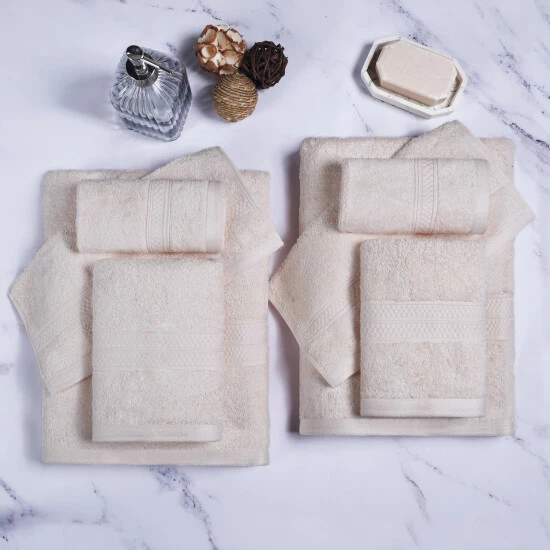- Set includes 2 bath towels, 2 hand towels, and 4 face towels ย