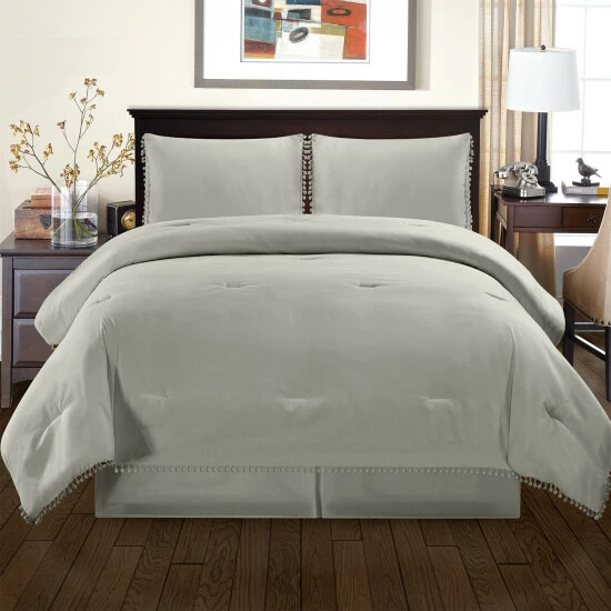 Choose softness and beauty with this quality comforter set by Superior. Polyester-microfiber material delivers soft comfort and breathability, while pom-pom fringes and a solid hue offer an elegant, contemporary look for your bedroom. The hypoallergenic down alternative reduces the risk of allergy symptoms and creates cushiony bedding you can use year-round.