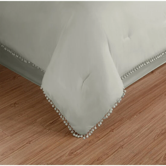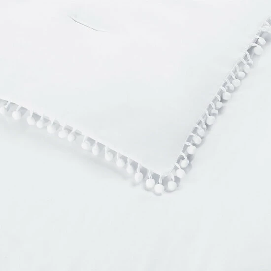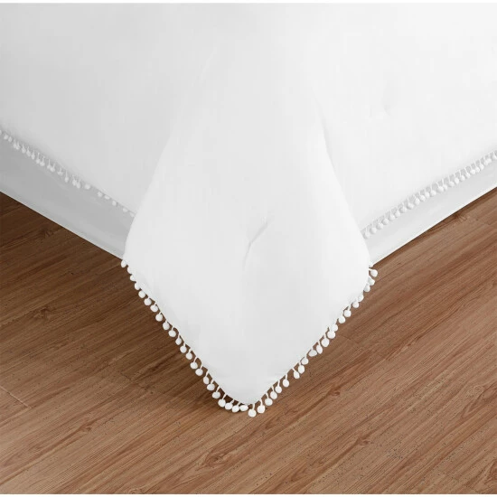 - Pattern: Fashionable and eye-catching fluffy pom-pom fringes on the sides of the comforter and pillow shams