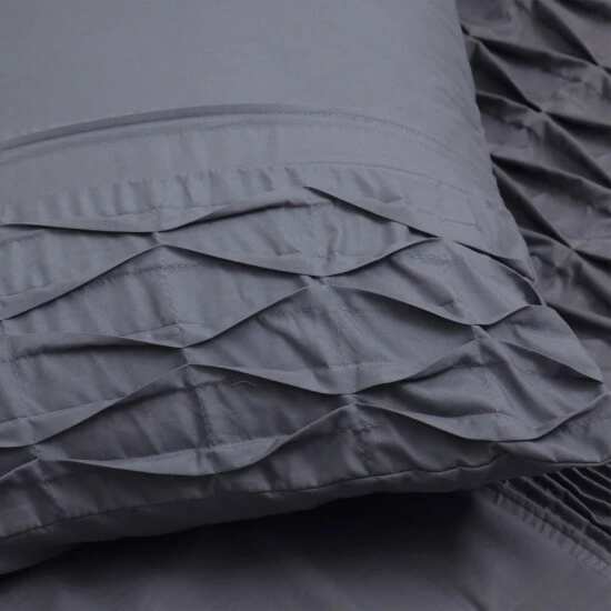 - Pattern: The Arabella bedding set is beautifully designed with side by side pintuck lines and pin tuck raised diamond design that makes a breathtaking pattern arrangement on the comforter. Vertical pintucks and lofty diamonds border one side of each of the two pillow shams for a delightful match. Soothing Grey color fits neutral as well as glam decor.