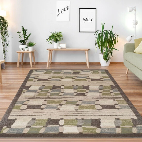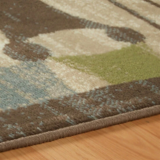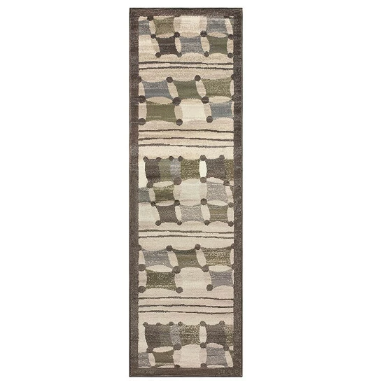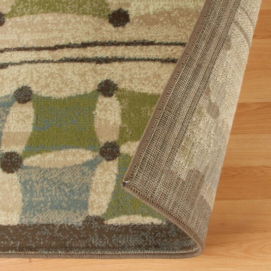 The simple and sophisticated design of the Axton Indoor Area Rug will instantly elevate the beauty of your hardwood or tile floors. The linked geometric pattern showcases shades of cool green, blue, and white pokes through a brown backdrop to lend a festive feel to your interiors. Crafted from 100-percent Polypropylene fibers, this piece boasts a 0.31-inch rug thickness to create a soft feeling underfoot that is perfect for everyday use.
