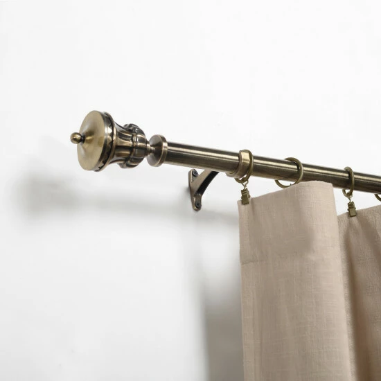 Frame your windows with the Baton Curtain Rod. This expandable telescoping design is made from a blend of stainless steel and aluminum with an antique brass electroplated finish that can fit multiple window sizes ranging from 36″-66″ or 52″-144″. Baton has a robust 1″ diameter and the ability to hold up to 44lbs which is ideal for heavier fabrics. Complete with decorative finials in a gorgeous antique brass, this hardware will instantly change the look of your window treatments.