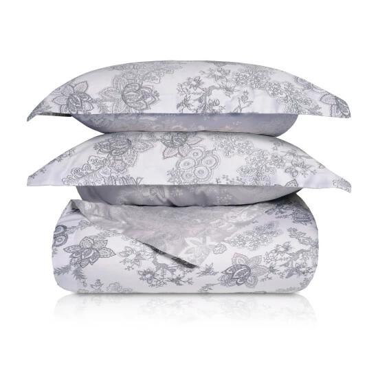 Bring a delicate, feminine touch to your bedroom decor with the Blossom Duvet Cover set. Displaying an intricate floral pattern in grey and white tones, this set is made of 100 perfect cotton.