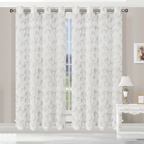 The Rosewitt Scroll Bohemian Floral Sheer Curtains by Miranda Haus are the ideal accent for any modern home. Crafted from 100% Polyester with rod pockets or stainless grommet header (depending on size), this panel duo is durable and modern in design. Our sheer curtains provide privacy while still allowing the sun to peek into your space, giving your home a cozy feel. These curtain panels feature a floral scroll design that will effortlessly accent your windows.Β