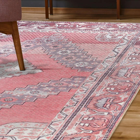 Get ready to indulge in the dreamy details of the Jazlynn Bohemian Oriental Geometric Medallion Indoor Area Rug. The carefully curated large-scale center medallion is given a modern update through its vibrant palette while accenting florals and geometric motifs evoke a sense of easygoing elegance to your favorite indoor living space. The flatwoven Polyester base cleans easily, allows chairs sitting atop this rug to slide easily, and is sure to clear any doorway in your home. Finished with a well-made Cotton canvas backing, this rug is a long-lasting and durable option for homes with children and pets (rug pad recommended).ย
