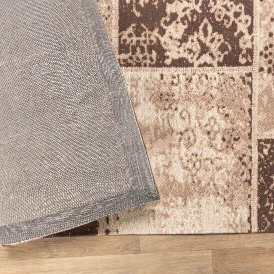 Add warmth and depth to your space with this chic area rug. The rug is jacquard-loomed from a blend of 95-percent cotton and 5-percent polyester, creating a durable, easy-clean design that is resistant to stains, mold, and mildew. The versatile rug features a striking patchwork-look pattern with floral and medallion designs, enhanced with distressed detailing for vintage charm.