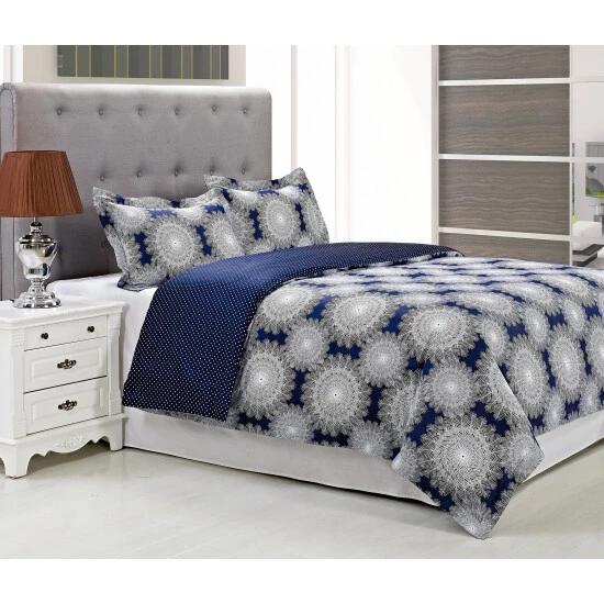 Enhance the look of your bedroom with this bright, cheerful duvet cover set. There is an intricate snowflake pattern on one side of the duvet and a polka dot pattern on the other side, letting you instantly switch between styles. The set includes one duvet and two shams so you have everything you need to cover your bed.