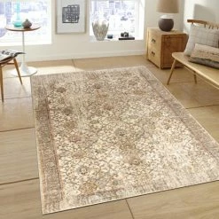 Give your space a bohemian-chic update with the Cerwyn Area Rug. This vintage-inspired rug features a traditional floral and vine motif that is modernized by the distressed edging and muted color palette of pale blue, pink, and gold atop a creamy ivory base. Cerwyn is crafted from 100-percent Polypropylene and boasts a 0.5″ (12mm) rug thickness to create a plush and velvety feeling underfoot that is a long-lasting option for homes with children and pets.