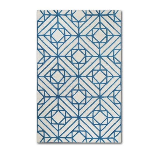 Add class to any room with the intricately hand designed 5′ x 8′ area rug. The 100 perfect wool consturction makes for a higher quality product in addition to it being completely tufted by hand. Featuring a raised geometric diamond pattern, the construction is sturdy to help withstand years of use while being exquisitely pleasing to the eye. A display of Teal diamonds atop an Ivory canvas, the quality of this rug is just as high as the craftmanship that went into it. It makes a statement on it’s own. Make this rug a great decoration piece for your home and allow it to upgrade the look of any room.