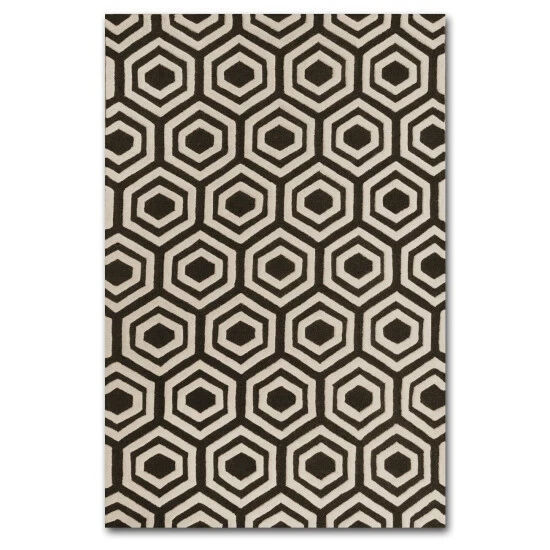 This beautiful geometrically 100-percent Wool rug is casually elegant. The desgin speaks for itself as it will bring character to any room. The soothing earth tones of Brown and Ivory make this 5′ x 8′ rug comparable to a work of art. It appeals to the eye while comforting the senses. The 100-percent wool consturction makes for a higher quality product in addition to it being completely crafted by hand. This piece has a genuine feel and is sturdy to last over time. The intricate display of the bright, embellished hexgon-like pattern against the deep Brown contrast perfectly. They make this rug a stand alone decorative piece. Accentuate the decor of any room with this lovely addition.