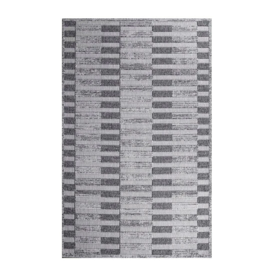 Complete and add comfort to any indoor or outdoor space with the Bryus Contemporary Stripe Geometric Area Rug. Varying shades of gray create this playful stripe pattern, which showcases a high-low loop pile height giving this rug a carved appearance to bring visual interest and a texture-rich feel to this geometric design. The family-friendly 100-percent Polypropylene construction can handle some of your most high-traffic areas, including your outdoor spaces. This piece boasts a 0.24-rug thickness at its highest that cleans easily, can fit under most doors and allows chairs sitting atop this rug to slide easily. Crafted to weather the elements while remaining soft and long-lasting, this lovely rug is sure to add style to your patio, deck, or any indoor living space.Β