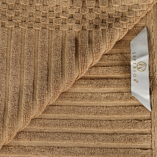 - Towel set includes a unique design; ribbed in a solid color with a checkered border Β
