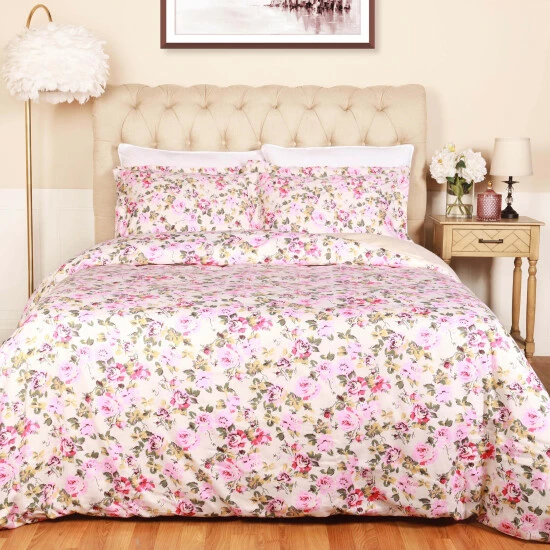 Add a touch of flirty feminine charm to your favorite room with the Superior Vintage Floral Bedding Bohemian Wildflower Cotton Duvet Cover Set with Pillow Shams. Crafted from 100-percent premium Cotton with a cozy 300-thread count, this set is breathable, plush, and durable. To keep your comforter in place, this duvet cover features a clear, hidden button closure for a clean and streamlined look. This set is available in a variety of stylish colors, including; Cream, Light Blue, Silver, and White.