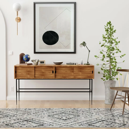 The Decker Modern Abstract Diamonds Indoor Area Rug showcases a dazzling array of color and pattern create the perfect finishing to any room in your home. The rippling effect of the diamond motif pattern is featured in subtle shades of slate gray, brown, and black over a beige foundation to evoke the illusion of movement while accenting your tile or hardwood floors. Stylish and functional, this family-friendly area rug is crafted from Polypropylene with a jute backing and boasts a 0.31-inch rug thickness that is easy to clean while sturdy and durable enough to handle some of the most high-traffic indoor areas of your home.