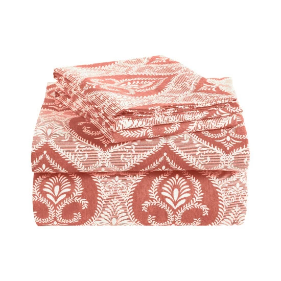 Accent your bed with the Delevingne Fleur-de-Lis Printed or Solid Deep Pocket Sheet Set. Well-made with ultra-soft 100% Cotton Flannel, these charming sheets are thick, soft, durable, and breathable; perfect for everyday use. This set is available in a variety of colors with a scrolling Fleur-de-Lis or solid pattern that instantly elevates the beauty of your space.