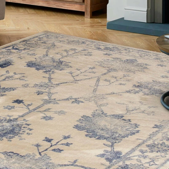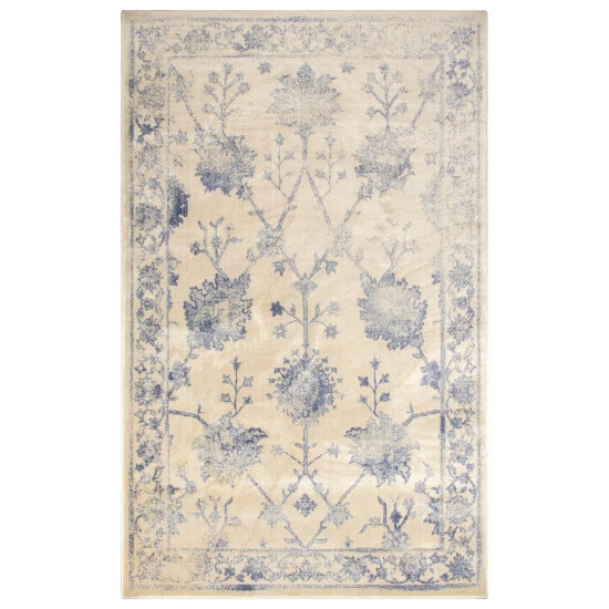 Add understated elegance to your favorite space with the Abelia Area Rug. This lovely piece boasts soothing blue vines and leaves with a matching border growing across a backdrop of creamy ivory. The faded finish gives Abelia an antique feel that works wonderfully in traditional, transitional, modern or eclectic interiors.
