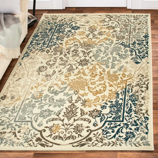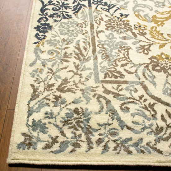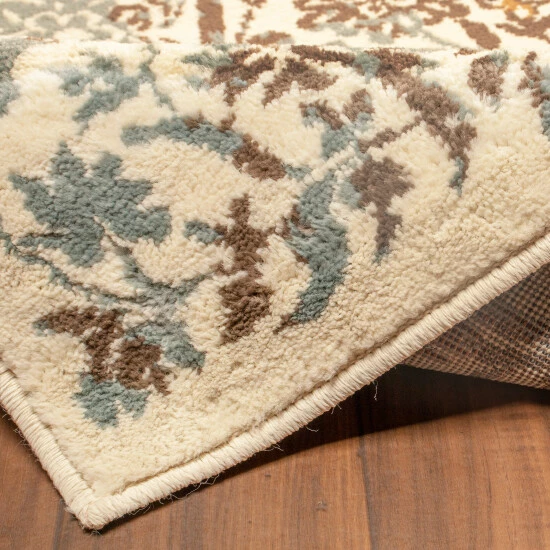 Incorporate a touch of opulence to your decor with the Araya Area Rug by Superior. This intricate and gorgeous floral design brings a hint of whimsy to a variety of modern, traditional or eclectic interiors. The 8mm polypropylene pile in a lovely ivory backdrop displays a soothing and opulent floral pattern in cool tones of blue, beige, ivory, grey and gold and has a durable jute backing to give this rug a sturdy but plush feel.Β