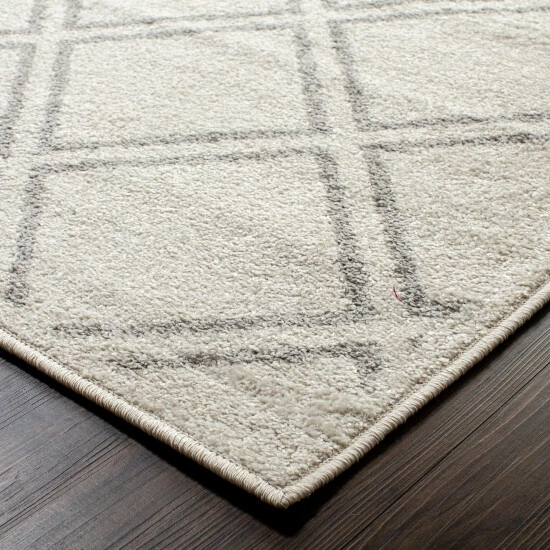 Add simple sophistication to your floors with the Topacio Area Rug. Made with premium, 100% polypropylene fibers and boasting a 0.24″ pile height, this rug creates a plush feel that can also withstand high-traffic areas of the home. A diamond trellis pattern in a delicate grey resting atop a backdrop of creamy ivory creates understated elegance in your favorite space. Elevate the beauty of your eclectic, bohemian, modern, or transitional decor with this charming geometric rug.