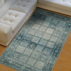 Fashioned with an Oriental block pattern with medallion motif border to accentuate any room. The soft blue and beige colors are inviting and will add contemporary elegance to your home. Desirable color combination of soft blue and beige accentuates any room and adds a simple elegance