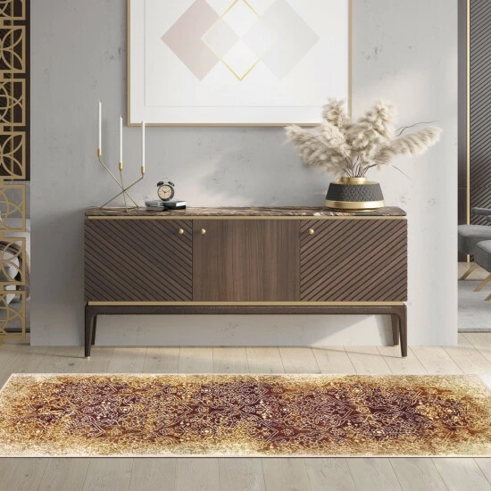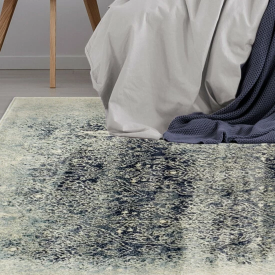 The captivating beauty of this delicate and neatly placed damask patterned Apollonia rug creates an eye-catching but contrast intricate design over classic camel and brown distressed backdrop or electric and distressed navy-blue backdrop. The fade out effect at the border enhances the beauty of this rug. Best for contemporary and traditional set up and to up-lift your living space decor.