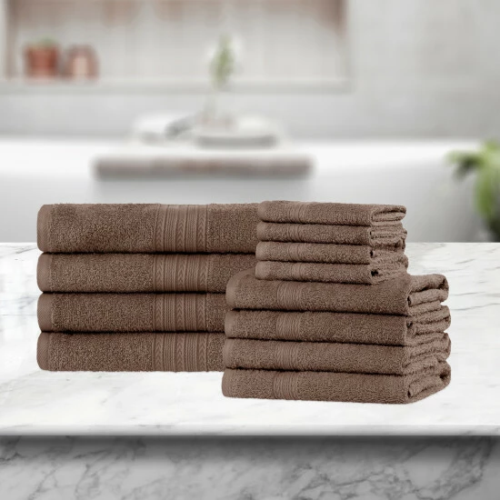 Get your day off to a great start with this 12-piece set of luxurious ring-spun towels. Made from two-ply, 100-percent cotton, these strong, absorbent towels feel soft on your skin. This set includes bath, hand, and face towels for a complete hotel-style set to satisfy guests.