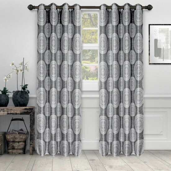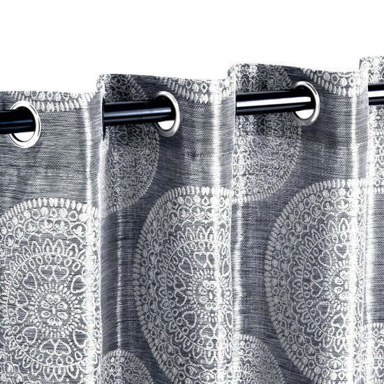 Frame your windows in utter glamour with the Marmore Jacquard Curtain Set. This duo adds a luxurious drape to your window treatments, creating privacy while still allowing the sun to filter into your space. This set boasts a lovely jacquard woven construction of floral medallions crafted from 100% polyester which makes a wonderfully designed panel that has a modern touch with its stainless grommet top. The ornate medallions woven throughout this pair gives them extra texture and creates an ornate highlight to your interior. Style meets functionality with these stunning curtains.