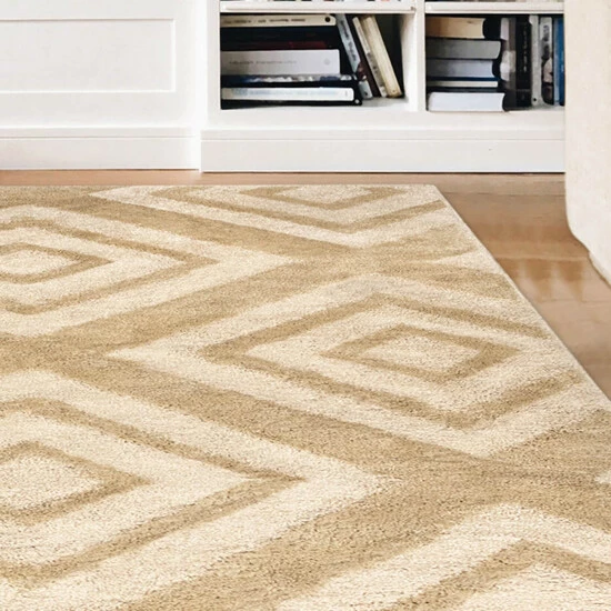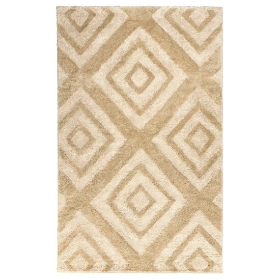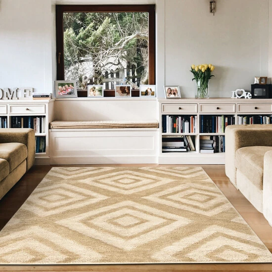 Protect your living room floor from wear and tear when you install this durable area rug. Pet-friendly, moth-proof, and water and fire-resistant, this polypropylene rug is practical yet elegant. Gorgeous diamond motifs adorn this area rug, while its high-low pile gives your floor texture and dimension.