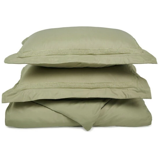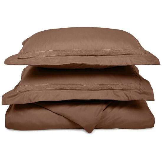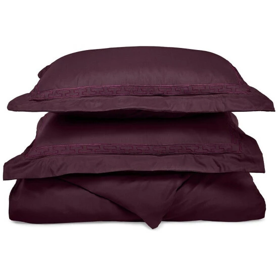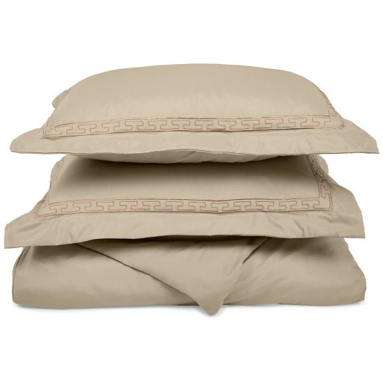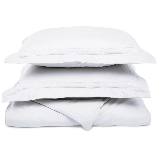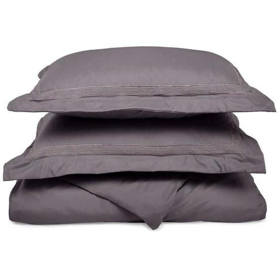 Simple but elegant, this Miranda Haus duvet cover set will add hotel quality comfort to your decor. The set is crafted from brushed microfiber for a soft but lightweight feel, and features one duvet cover with clear button closures, and two shams (only one sham in Twin and Twin XL). Geometric embroidery on the shams lends an extra touch of sophistication to the set.