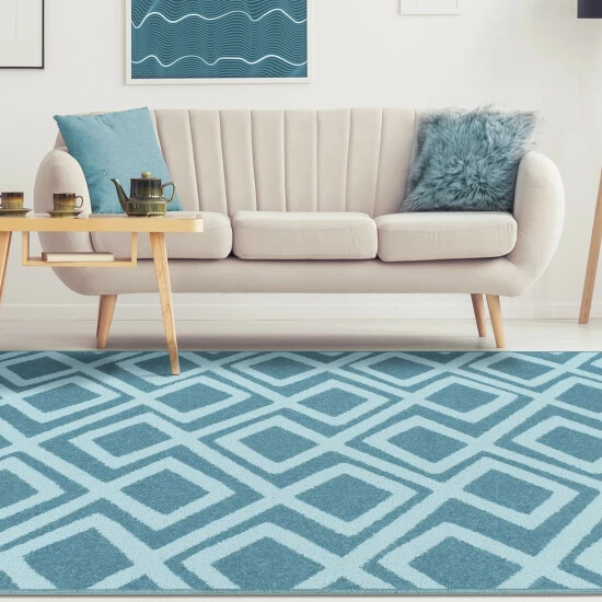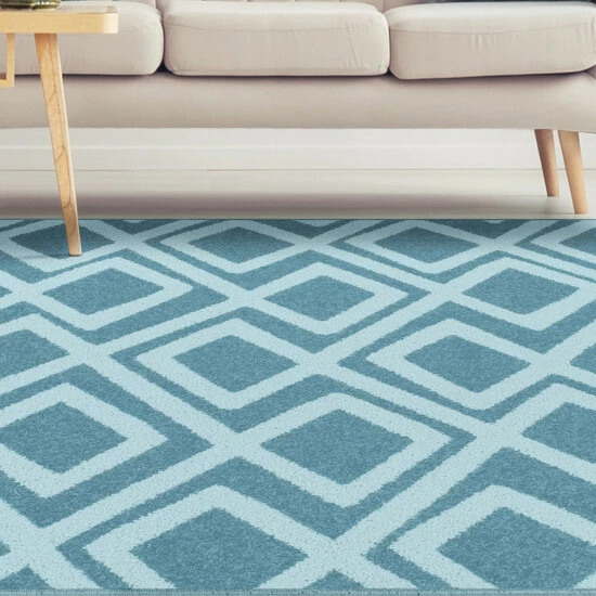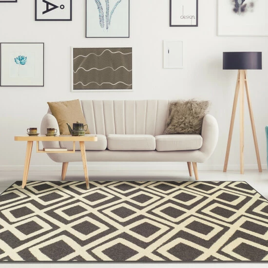 The fun geometric design of the Flagstone Area Rug is available in either dark grey or blue to spruce up your modern or contemporary decor. Well-made with quality, 100-percent Polypropylene fibers and a 0.24-inch pile height, this rug can handle high-traffic areas of your home while remaining soft and long-lasting. The smooth cool shades on beige makes a terrific geometric pattern area rug and will perfectly accent your modern or contemporary style home.