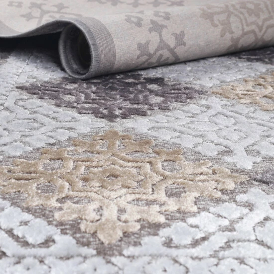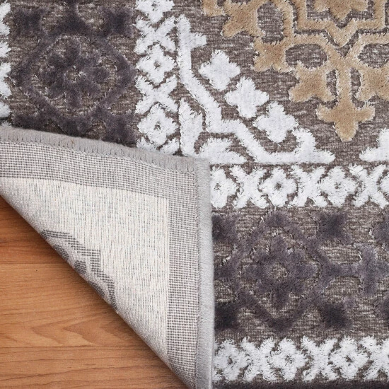 Versatile in pattern and palette, the Rumi Modern Floral Medallion Indoor Area Rug offers a sophisticated look to any indoor living space. This symmetrical design elevates your tile or hardwood floors through the defined details of the repeating floral medallion pattern and accenting border. The durable, easy to clean 100-percent Polyester pile construction combines subtle silky sheen and a velvety soft underfoot, making this piece the focal point of any room. The varied high-low pile height gives this rug a carve like effect to offer both visual and textural appeal that won’t go unnoticed. Perfect for homes with children and pets, this rug boasts an extra-low 0.12-inch rug thickness that is easy to clean while being sturdy and durable enough to handle any high-traffic area of your home, including mudrooms, family rooms, bedrooms, and hallways.