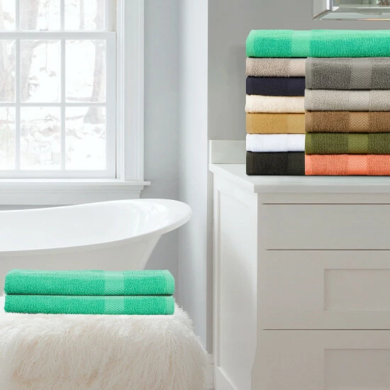 Add striking color to your bathroom with the Fulham Eco-Friendly Towel Set. Boasting a thick chevron border that compliments the vibrant, monochromatic palette of the towel, this touch of subtle texture adds a hint of glamour to the everyday shower. This generously sized set is extra absorbent and is ranked for quality control and durability, with the end hems neatly turned and firmly stitched. Great for travel, home, or dorm, this set is available in multiple bright eco-friendly colors.