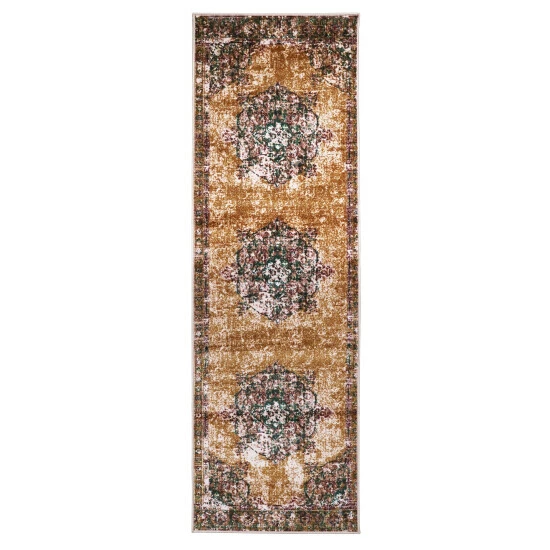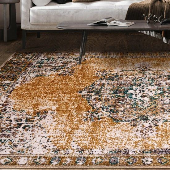 Inspired by the style of The Orient, the Gillespie Area Rug features a distressed octa-spiked medallion design that is saturated with rich earth tones and an overlaid with a burnt-out finish. Well-made with quality, 100% Nylon fibers and a 0.18″ pile height, this rug can handle high-traffic areas of your home while remaining soft and long-lasting. Each Gillespie rug was designed to attract attention to your home or office space with a striking, vintage look. This rug is machine washable & rug-able.