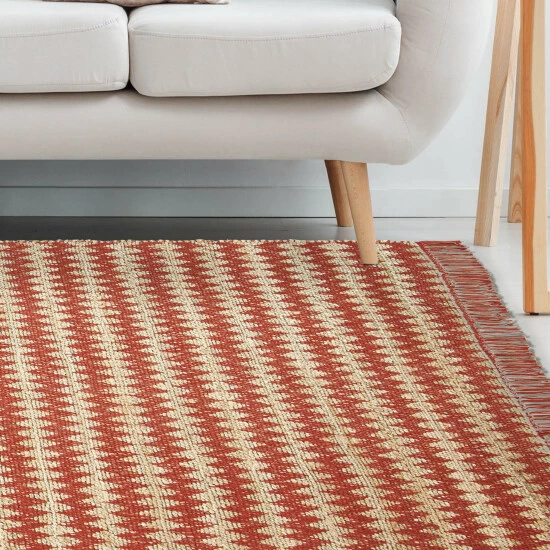 - Hand-woven, reversible, indoor area rug