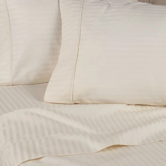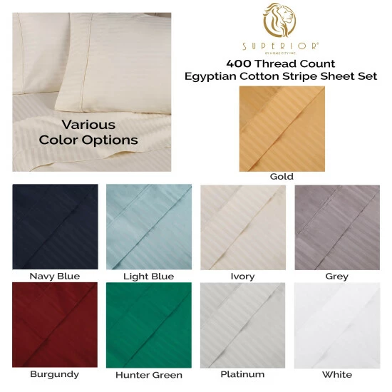 Enjoy the comforts of home with the Gyda Deep Pocket 400-Thread Count Egyptian Cotton Sheets. Crafted from premium Egyptian Cotton with a plush and durable 400-thread count, this beautiful set boasts a rich, silk-like feel and a luminous sheen from the luxurious sateen weave finish. The all around elastic band on the deep pocket fitted sheet stretches to fit mattresses with a plush mattress topper or oversized mattresses up to 18-inches deep. Mix and match your current bedding ensemble with this monochromatic stripe sheet set- plus, this bundle gets softer with every wash.