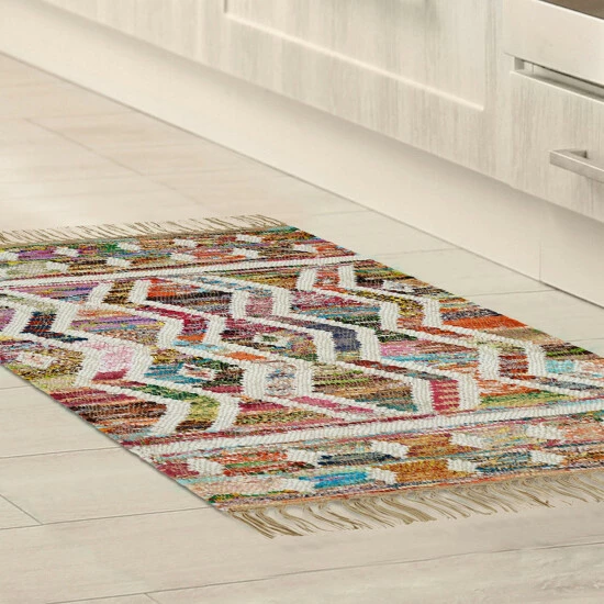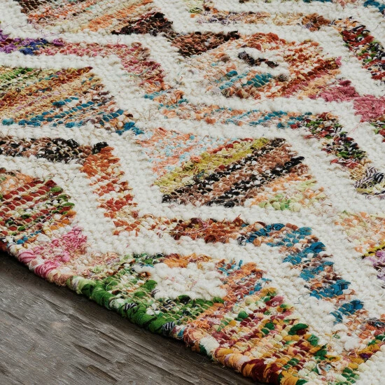 Handwoven wholly of recycled cotton material and designed with an oversize, zigzag motif in playful colors, this area rug is an eco-friendly and attention-catching complement to your rustic, transitional, or Southwestern setting. The reversible construction doubles its wear.