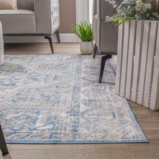 Subtle enough to blend into any home dΓ©cor, the Jonesy Traditional Floral Medallion Area Rug brings a striking yet serene look to your interiors. Comfort and style find harmony through the defined details of the classic medallion motif and the relaxed palette of bronze, blue, and cream offering simple yet elevated sophistication to your tile or hardwood floors. The extra low 0.11-inch pile height is easy to clean while being sturdy and durable enough to handle some of your most high-traffic indoor areas such as kitchens, mudrooms, basements, and entryways. The long-lasting 100-percent Polyester construction combines subtle sheen and a velvety soft underfoot to lend a calming look and feel that will blend into any home dΓ©cor.