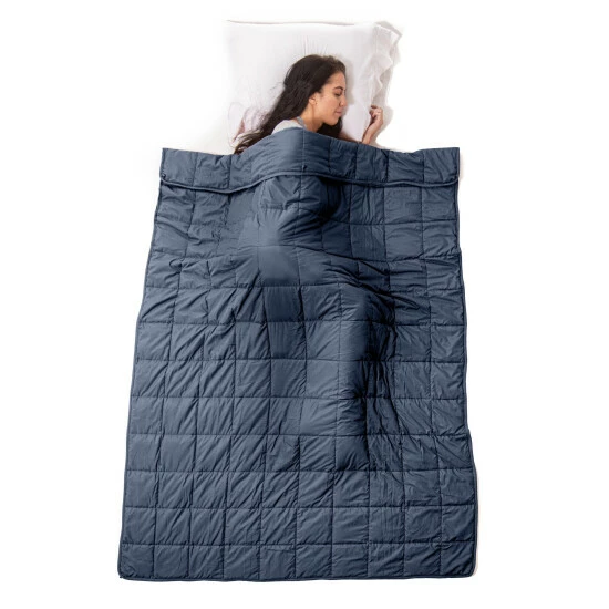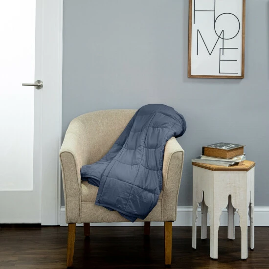 Fall asleepβand stay asleepβwith the Lexington Quilted Weighted Throw Blanket. The deep, even pressure of the blanket offers soothing comfort and gives the feeling of being hugged to help you relax and sleep comfortably through the night. This weighted blanket is designed to aid fitful sleepers and is known for having a tranquil, relaxing effect that reduces stress and anxiety. Ultra-soft Cotton embraces your skin for warmth and coziness while tiny glass beads provide added weight that is distributed evenly throughout the box-quilt design. Β These glass beads are wedged between a polyester filling to ensure that they stay encased while providing increased comfort throughout the night. Get ready to experience the calming sensation this weighted blanket has to offer.