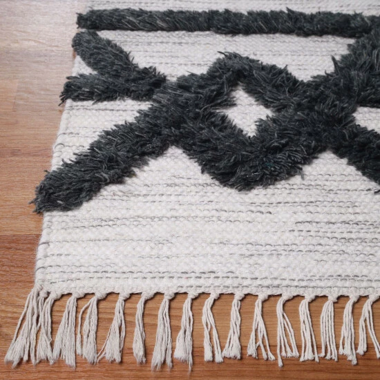Introduce an element of drama to your living room or dining room with the Lennox Modern Farmhouse Trellis Handmade Wool Indoor Area Rug With Cotton Backing and Fringes by Miranda Haus. Crafted from premium Wool fibers with a Cotton backing, this rug is handmade in India. The understated hues of the foundation allow the pristine craftsmanship and hand-tufted trellis design to shine through in this beautiful area rug. Our handmade wool rugs feature subtle, but individual differences that make each rug unique.Β