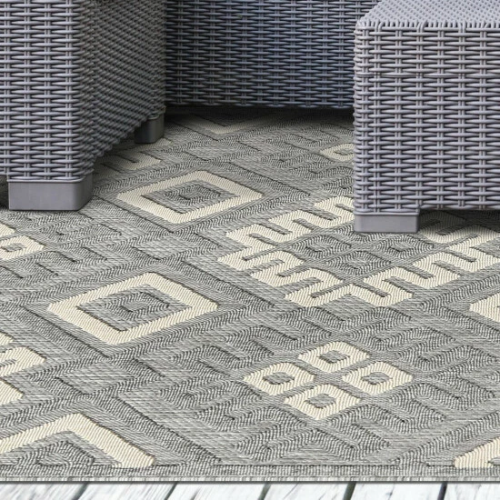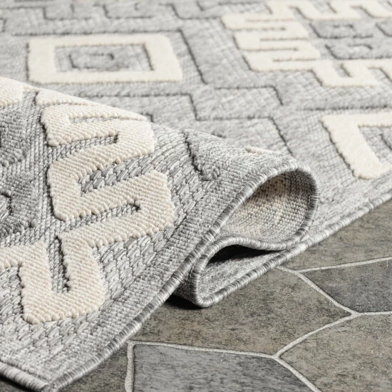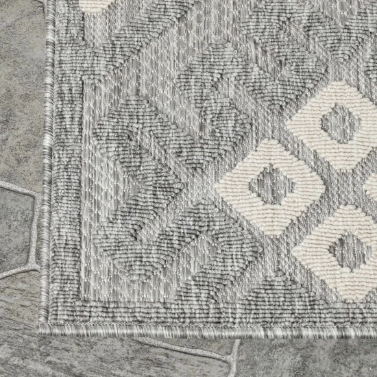 The right amount of texture and detail come together to create the Tillie Modern Geometric Diamonds Indoor/Outdoor Area Rug. The mesmerizing geometric diamond pattern displays a varied high-low loop pile height giving this rug a carved appearance to bring visual interest and a texture-rich feel to this contemporary design. Available in colorways of Gray, Slate, or Cream, this family-friendly 100-percent Polypropylene construction can handle some of your most high-traffic areas, including your outdoor spaces. This piece boasts a 0.24-rug thickness at its highest that cleans easily, can fit under most doors and allows chairs sitting atop this rug to slide easily. Crafted to weather the elements while remaining soft and long-lasting, this lovely rug is sure to add style to your patio, deck, or any indoor living space.Β