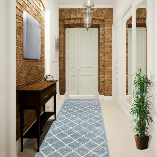 An uplifting fashionable criss-cross pattern on a beautiful shade of blue, cream or slate provides the perfect touch to your modern or contemporary style home.