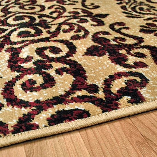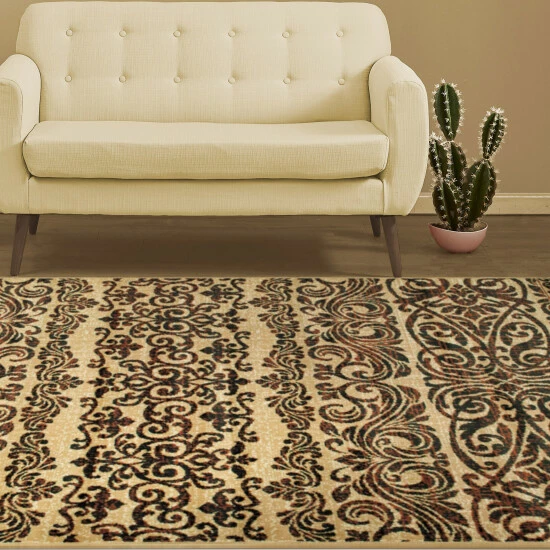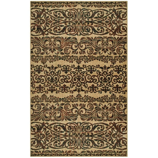 Timeless and versatile, the Maya Indoor Area Rug lends a traditional flourish to your interiors. The classic, scrolling damask pattern elevates your tile or hardwood floors in any formal setting. Available in Gold and Black color options, this family-friendly area rug is crafted from a durable 100-percent Polypropylene fiber construction with a 0.31-inch rug thickness that is perfect for everyday use.