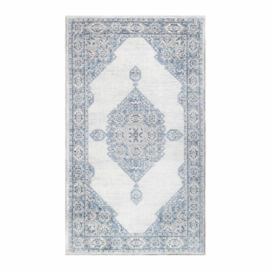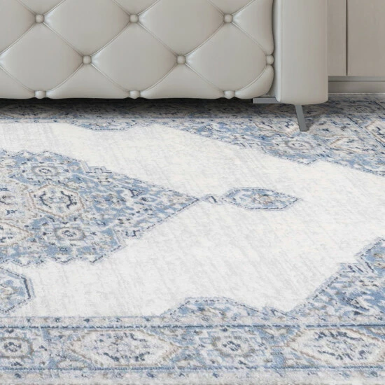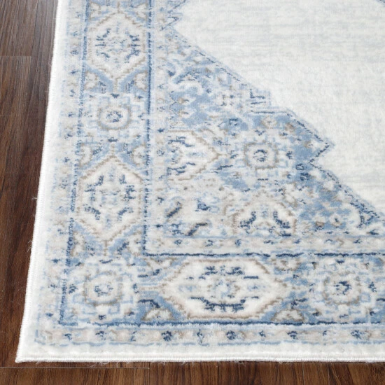 Frame your space with our beautifully designed Cagney Modern Farmhouse Oriental Floral Medallion Polyester Area Rug. The tried and true large-scale center medallion instantly becomes the focal point of this piece, while accenting florals and geometric motifs keep the overall look soft and sophisticated. Crafted from 100-percent Polyester, this sturdy base combines soft texture and subtle shimmer to add depth and dimension to your living space. The low 0.20-inch rug thickness cleans easily, allows chairs sitting atop this rug to slide easily, and is sure to clear any doorway in your home. Finished with a well-made Cotton canvas backing, this rug is a long-lasting and durable option for homes with children and pets (rug pad recommended).