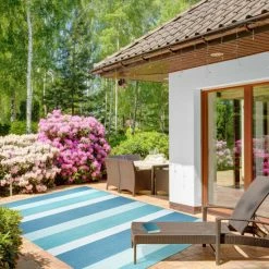 - Rugs are UV coated to protect against fading and other sun damage allowing for long lasting colors and a very durable and low-maintence indoor/ outdoor rug