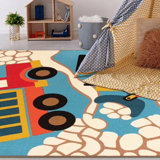 Add a fun accent to a boy’s play space with the Priestly Area Rug. Well-made with quality, 100% Nylon fibers and a 0.18″ pile height, this rug can handle high-traffic areas while remaining soft and long-lasting. This colorful piece gets little ones excited with its depiction of trucks hard at work moving rocks and boulders. This non-slip design sparks their imagination making playtime more fun. This rug is machine washable & rug-able.