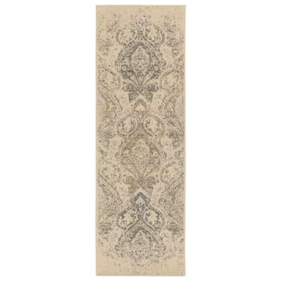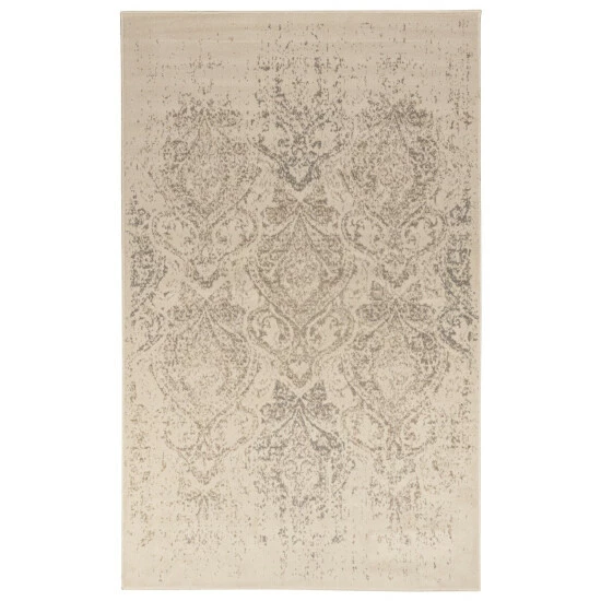 The distressed vintage pattern of the Otomar Area Rug will instantly anchor any room. The ethereal damask is featured in subdued shades of brown and slate blue that fades to the border atop the light grey backdrop. Woven and crafted from 100-percent polypropylene for strength and durability, the 8mm pile height has an incredibly velvety feeling underfoot that can withstand everyday use. This altogether practical, durable, and the low-maintenance rug is anti-static, fire retardant, moth-proof, hydrophobe, and features a jute backing. This area rug is a desirable option if you are looking for outstanding value at an affordable price, which can only be found at Superior.Β